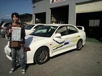 本日は愛知郡の西澤様のランサーエボリューションにデカールシートのラインを入れさせていただきました!シートの制作に約2週間ほどかかりましたが、ようやく昨日仕上がり、本日貼り付け作業をさせていただきました。西沢様も喜んでおられ、当店も嬉しいです(^.^) 記念にということで本人入り写真を撮らせていただきました。 またのお越しをお待ちしております!